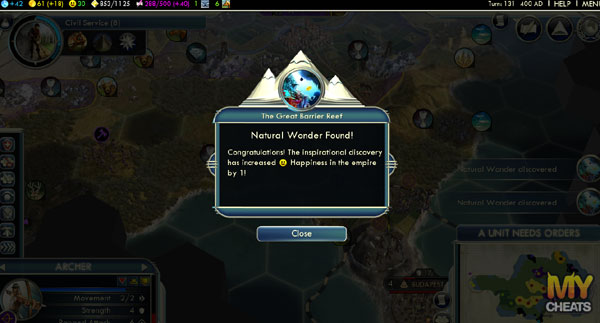 - A large Culture bonus, typically enough for a Free Policy. A great early-game advantage.