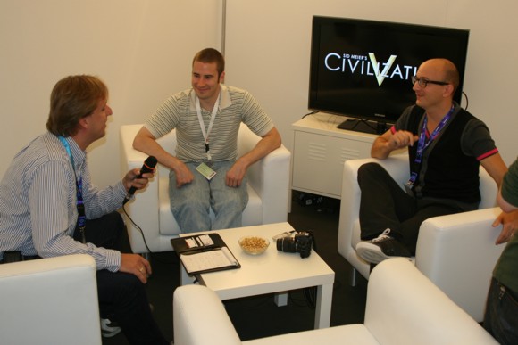 Most important for us was of course meeting up with Jon Shafer, the lead designer of Civilization V, and Peter Murray, Marketing Associate of Firaxis Games. Peter gave us this demo about Civilization 5 in this fancy business environment with all these civ hexagons on the walls. We talked with Jon about Civ for about 20 minutes as well. We got it on tape and we'll feature it later here on Apolyton. Please stay tuned, editing videos is not a daily job for us