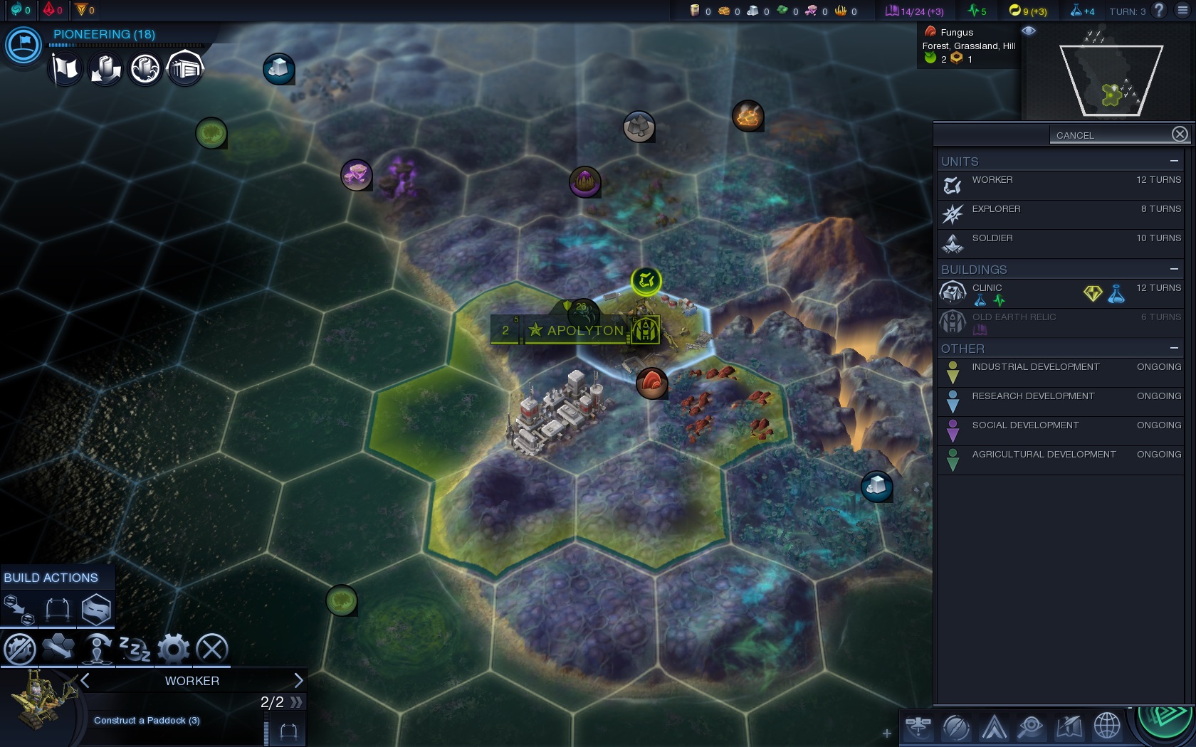 Our worker will be done in 3 turns, at which point I suggest we send it southeast.