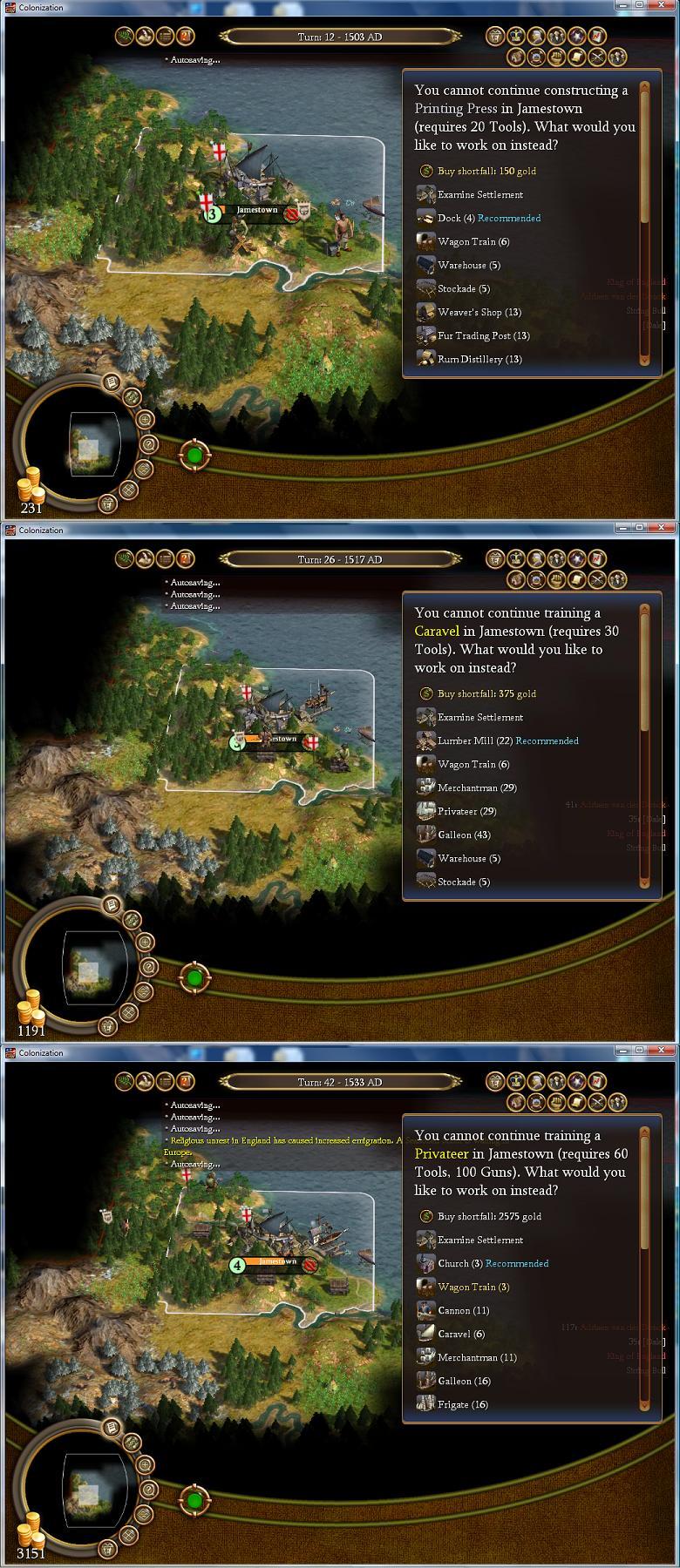 New issue, I bought a galleon and sent it to the new world. When it finally arrived, it ended up ouside the bottom of S. America. I backtracted to see it was a random location, it isn't after it left the euro screen. I will go back to the euro screen and try again.