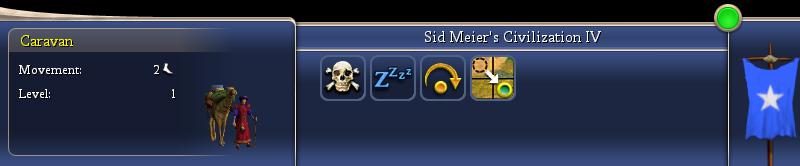 Clicking this button adds the PROMOTION_HASFOOD promotion to the unit and sets the units level to the ID of the origin city (something I need to find a better way to do.) The unit is also renamed from Caravan to 'Food from CITY_NAME (Caravan)' at this point.