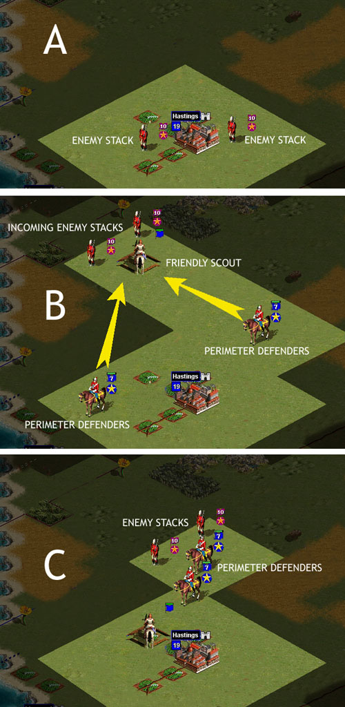 IIRC, you never explained how an AI could have a defensive force in a city of greater than 12 (or whatever the max is) units, WITHOUT moving units into the city as some die, which happens to be impossible when it isn't your turn