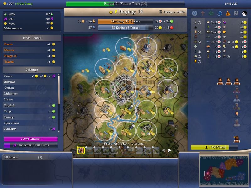 . I've beaten noble before. And I just don't know what went wrong. The point of losing is to learn from your mistakes, but I still can't figure out what mistakes I made. I had a 639 point lead over the chinese, yet they beat me in the space race. I know points don't mean everything. But at the end, I was number 1 in manufactured goods as well. So how did they beat me to the space ship?I manufactured all my parts before them. Except for the last few. It's like the last 20 to 30 turns they went into overdrive. And I don't think they were in a golden age.
