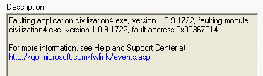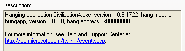The first time I`ve seen an error message when civ4 crashes ( this time to black screen, not reboot)