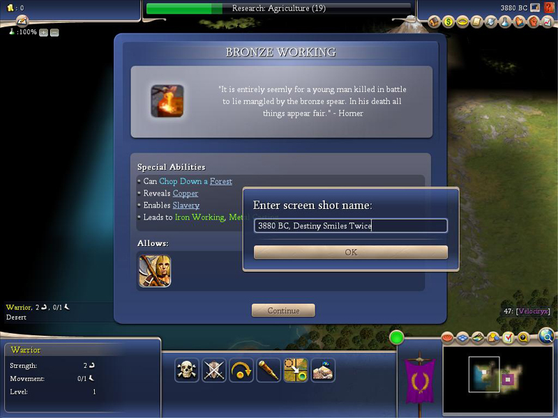3) Research BronzeWorking, adopt Slavery, and find a source of copper/site for a second city.
