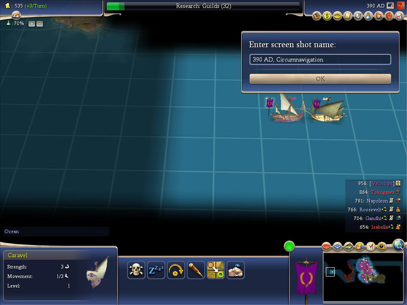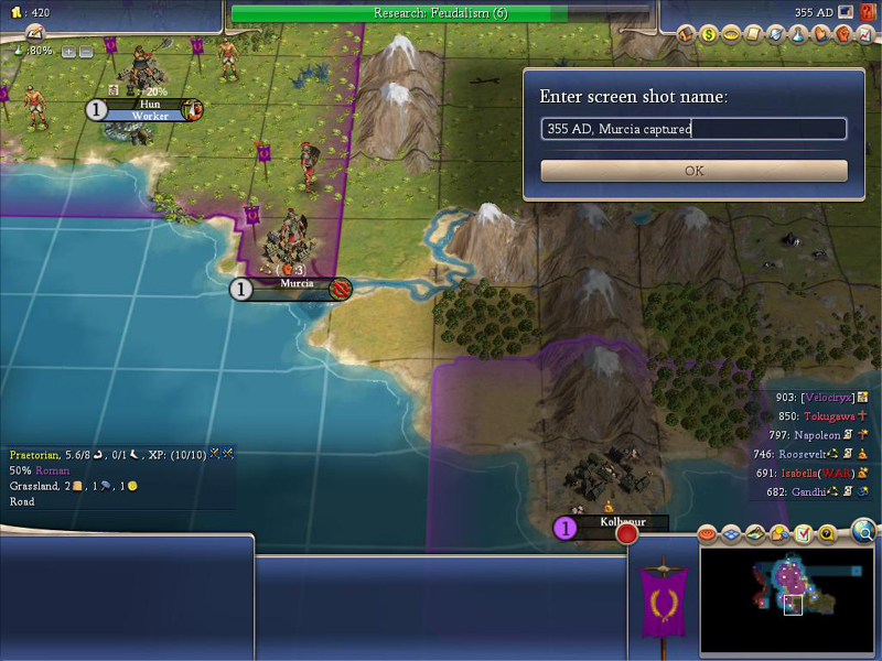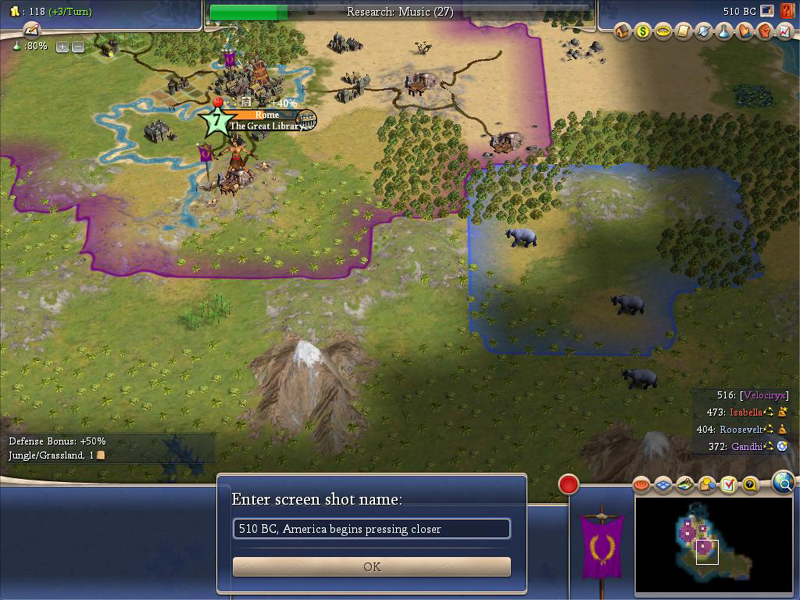 520 BC - Research to 80% (+3gpt profit), burn our missionary in Rome to spread religion there, and Rome completes our first Praetorian. Begins the Great Library.