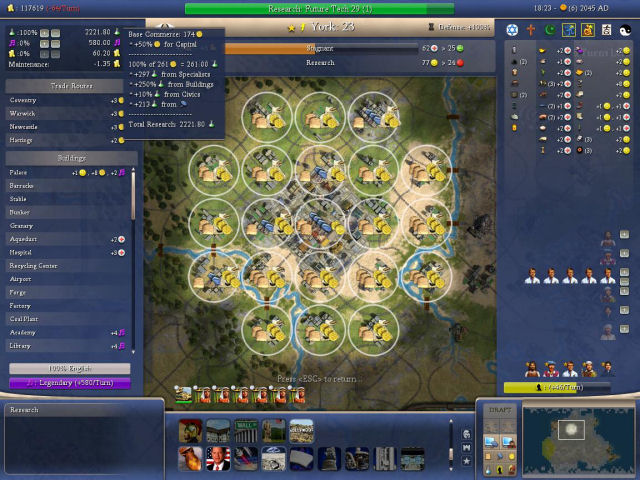 By the way, the above city still outputs over 900 science with the slider set to 0. The slider does very little. Within the fat cross only 5 commerce is generated. A bit more from the palace and trade routes, but that still only totals to a small part of the total science output.