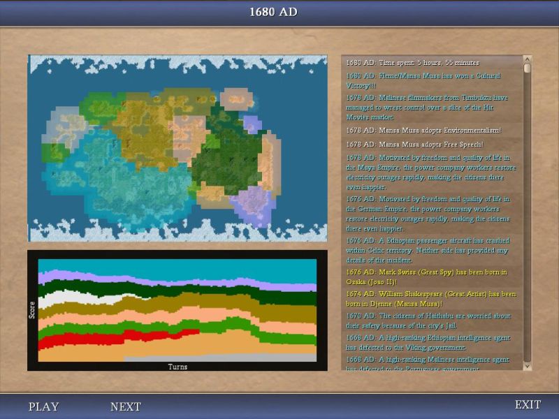 I've never yet played higher than prince, but just for fun I started a Diety game, fully expecting a quick defeat. Much to my surprise, I managed to keep everyone pleased and finally lost to a spaceship victory in 1900, while researching rifling.