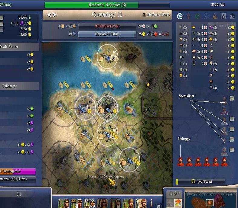 This leads to my second question: when the folks get unhappy do I create a specialist or take someone off a tile (as we used to do in Civ 3) -- and how do I do that?