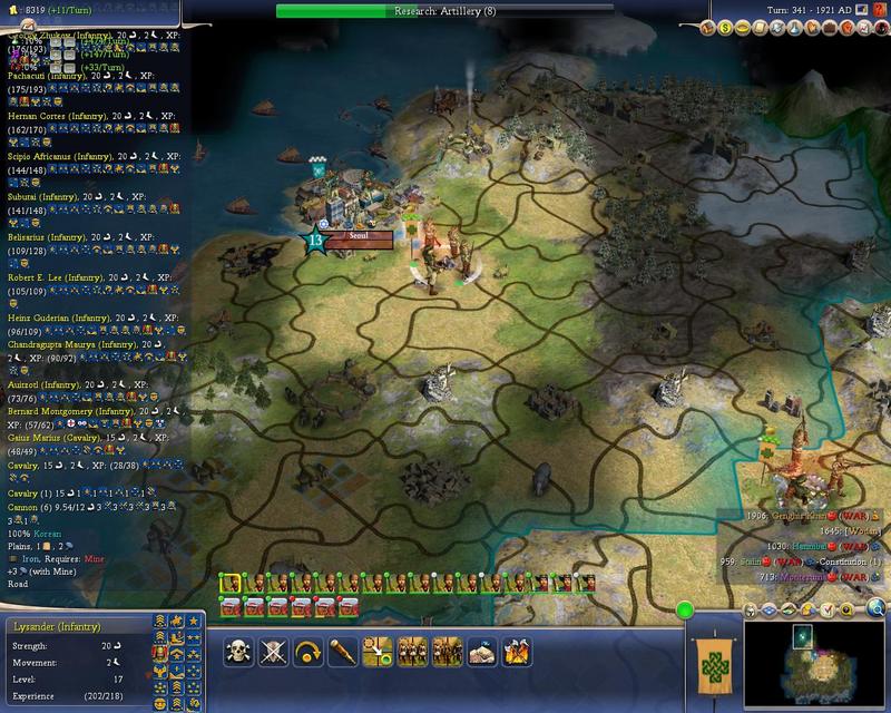 I considered it. If anything, getting CRIII cannon out of the gate was real tempting. Pros/cons. As I said, I lost a huge number of cannon. On the other hand, my warlords were my only offensive factor. I had a couple of cavalry running around but AIs had rifles so it was a losing proposition. Anyway it wouldn't have been a bad play to settle maybe 2 of them. (Making an Academy however would have been a waste as I was already making cannon 1/turn.) OTOH that would have hurt my capability to field 2 strong SODs. Skimming 2 units might not sound like a lot but there were many instances where that would have been enough to stall out an offensive. As it was I think I didn't have a single stall. (Then again I had 2 super medics which can heal almost any damage in just 1 turn even in enemy territory.)Originally posted by OzzyKP View PostInteresting to see you attached all your GGs. I settled all mine.