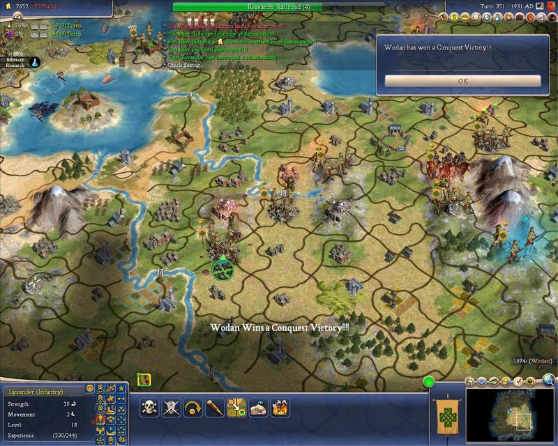 Also I'm attaching a screenshot of about 3/4 complete. From that point on I was able to stop using cannon altogether, which was a shame as I had almost teched artillery... the fat lady would have sung at that point. But, it was moot because my max combat max drill commando morale infantry could swoop in and take a city without even bothering to besiege it first.