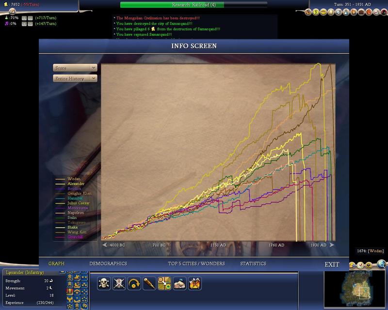 oh, and, 17 warlords. Somebody should be able to beat that, though, because I gave up considerable points by fighting outside the great wall.