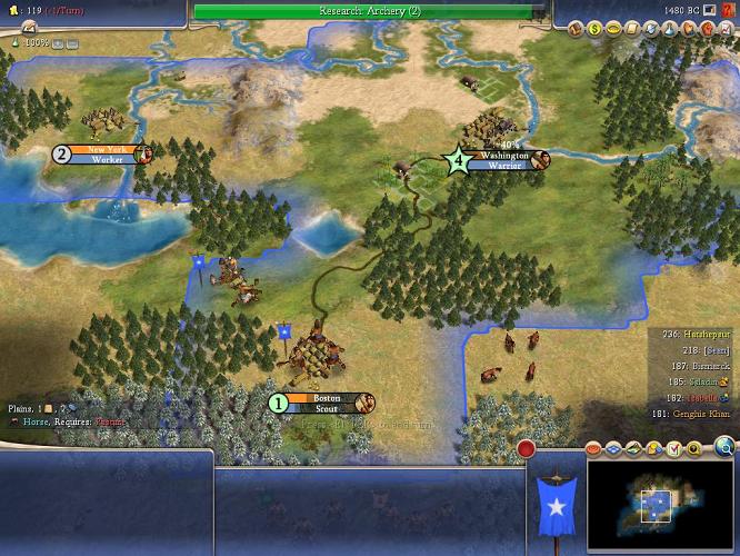 3280BC – Hinduism founded elsewhere. Washington now size 3, one more warrior before I start a worker (is it obvious I don’t know what I’m doing yet?)