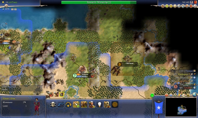 As I said in my last DAR, my plan is to now build lots of units (workers and military) as I'm weak in both areas.