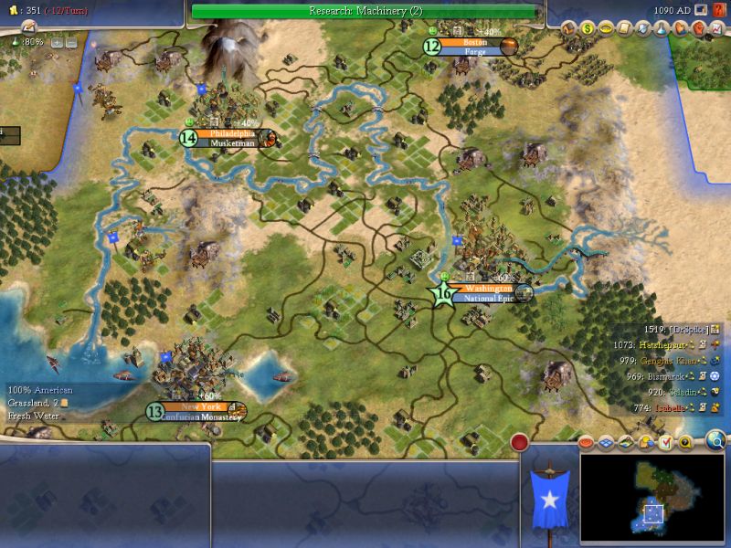 The Great Lighthouse has just been built before that screenshot in New York. Philadelphia and New York would also produce 2 more settlers to found to the West of Illinois.