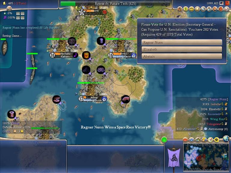 Apprently the spaceship victory preempts finding out who won the Sec General race along with my plans to sack London if Liz had won it.