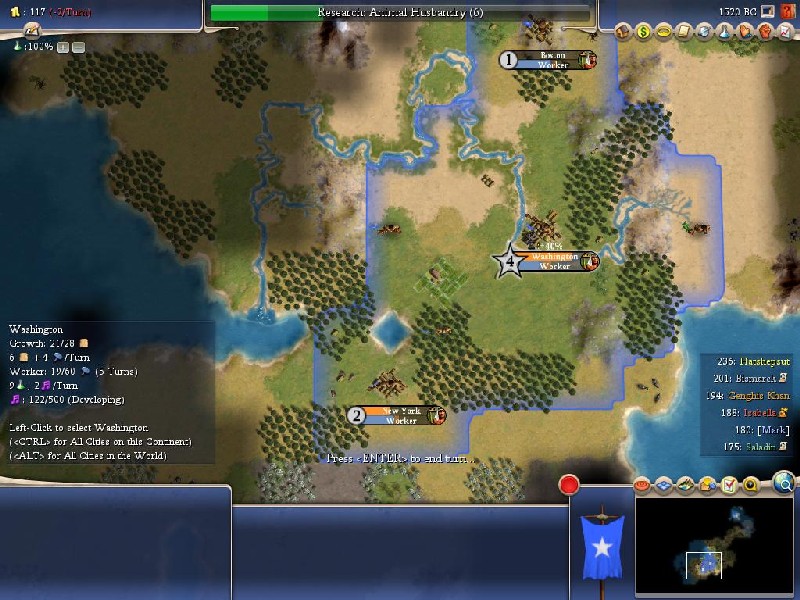 2120BC – New York founded. Building another settler at Washington, with the Worker chopping for it – going to road to New York after that.