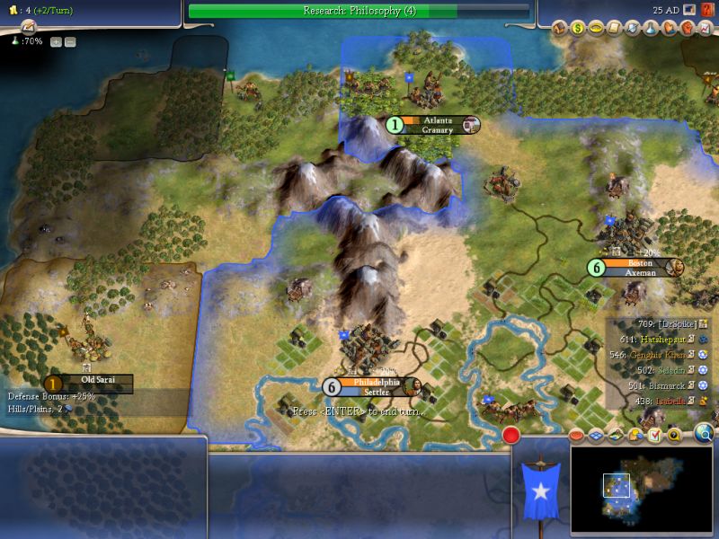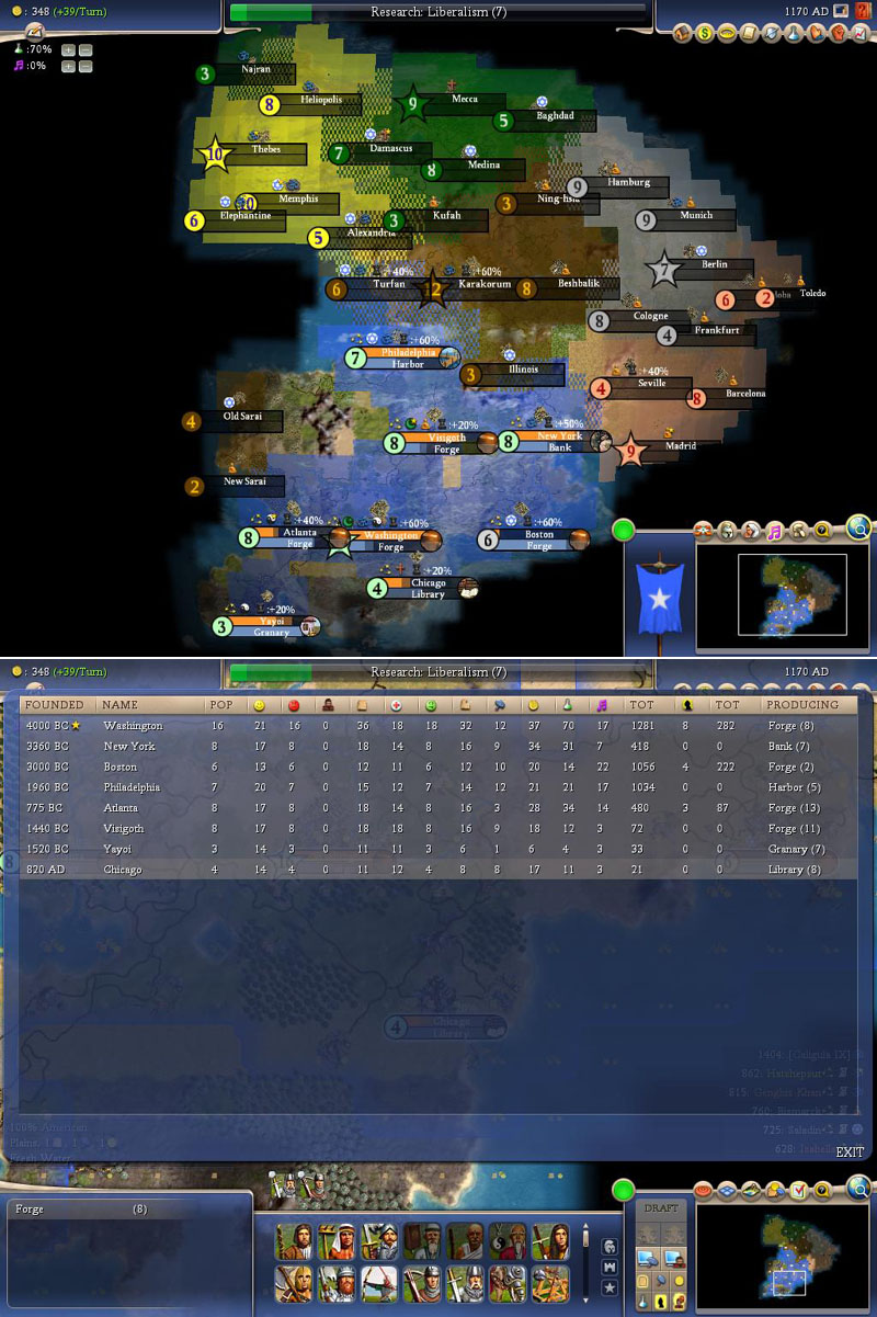 660 AD Spices near Chicago connected. Start researching Civil Service. For chaining Farms & Macemen.
