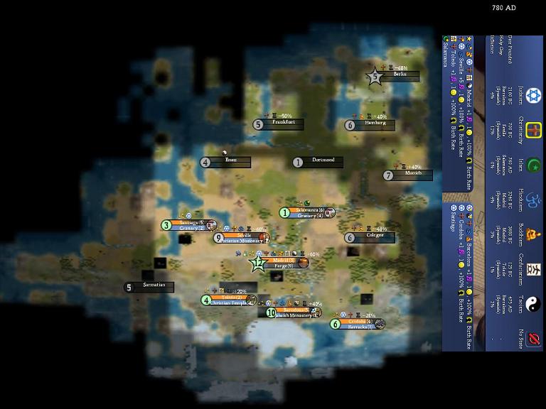 at this point (775 BC) we still need 2 religions, many cities, techs other than religions, and defenses, not to mention meeting everyone.