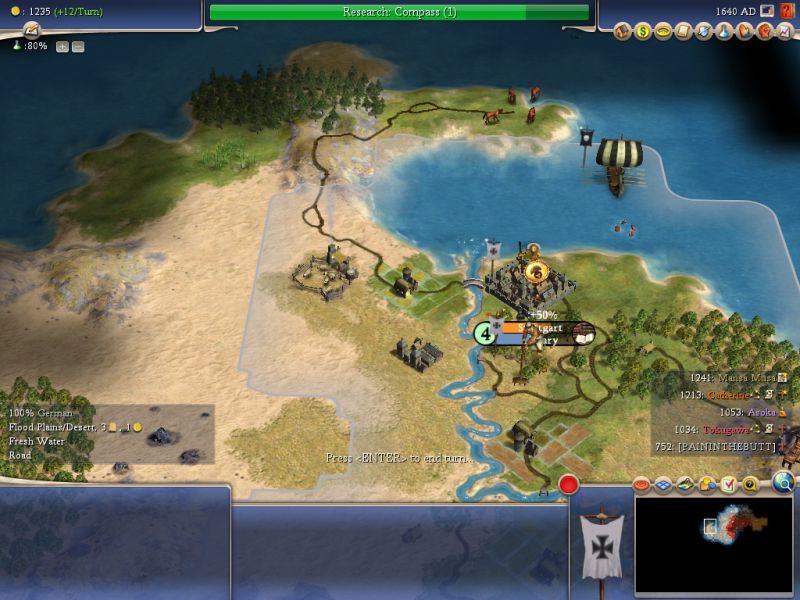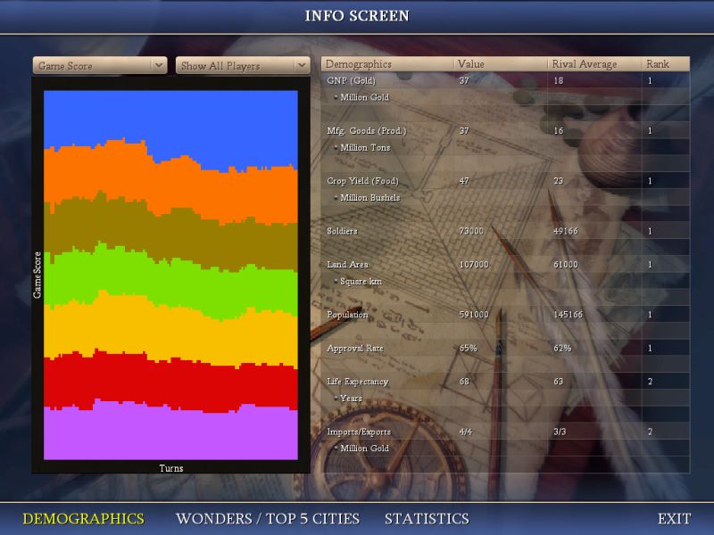 Next game, a more difficult setting..here is what I accomplished by 970AD
