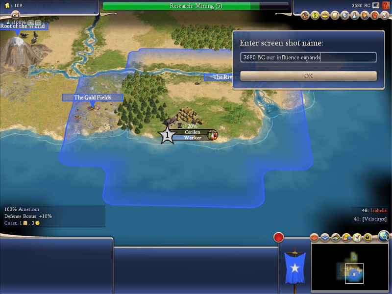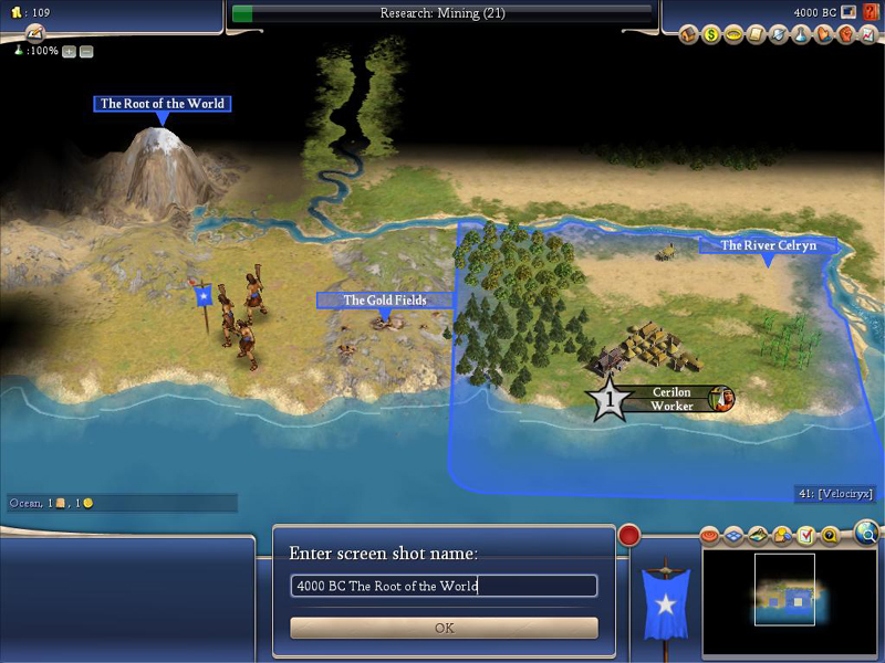 OOC Notes: Two huts near our starting position. Founding the city "popped" one, and the warrior got the other on his first move. Both netted us gold, and between them, we received a whopping 109g....a fortune for this early in the game. The snippet above is my way of explanation for how the People at the Root of the World came to know such wealth.