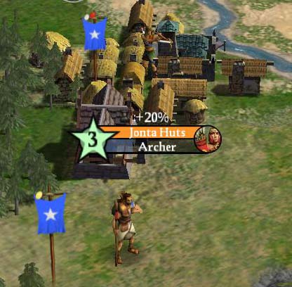 Lots of warriors with bows and arrows protect both the 3 towns of the Jonta tribe, and the people