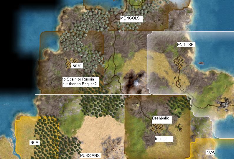 The Incans. Ruthless indeed is their expansion. Already they threaten England with suffocation, and they also seem poised to overrun the lands that were so long ago promised to the Indians. The Mongols, as well, are ambiguous in their missives, but thus far, they have yet to incur our concern.