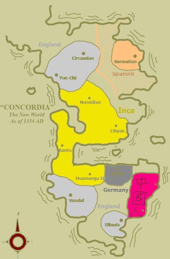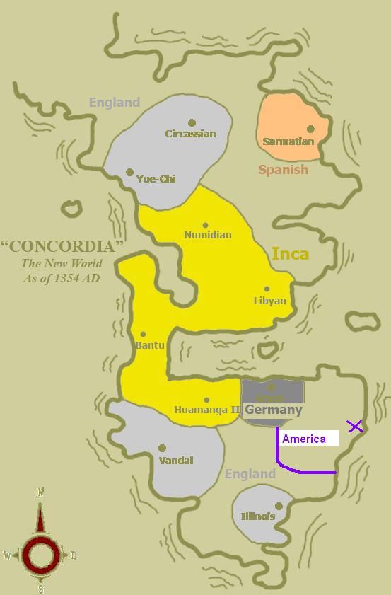 1301 a.d.- We continued on our quest to map the continent, which was proving to be much larger than anticipated. The General stayed behind to meet the troops arriving from Cuzco, while Cristobal and I commanded the fleet towards the south of the continent, it came to our attention that the English had already established settlements including the conquest of the Vandal empire, and the territory of Illinois, word from the English claimed that the Sarmatian Empire was due north of Illinois but warned us that Sarmatian ships were powerful, and would challenge our authority over the seas. We weren't worried however, as there was no evidence to support that the natives had the technological advancements we had; clearly there were roads, but none that could compare to those in the old Continent.