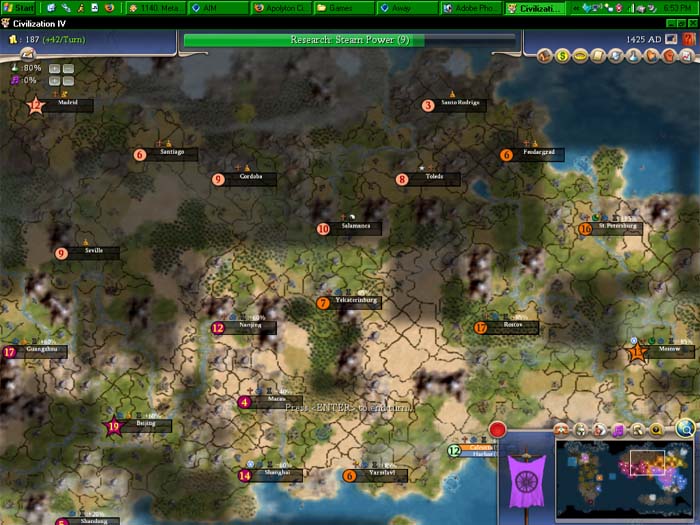 If everyone had the land China, Spain & Russia had, would the new world have been fully settled? Or would people be hemmed in too much by maintenance and just leave it alone. Would people feel a need to conquer if they've got all the land they need? I dunno.Captain of Team Apolyton - ISDG 2012