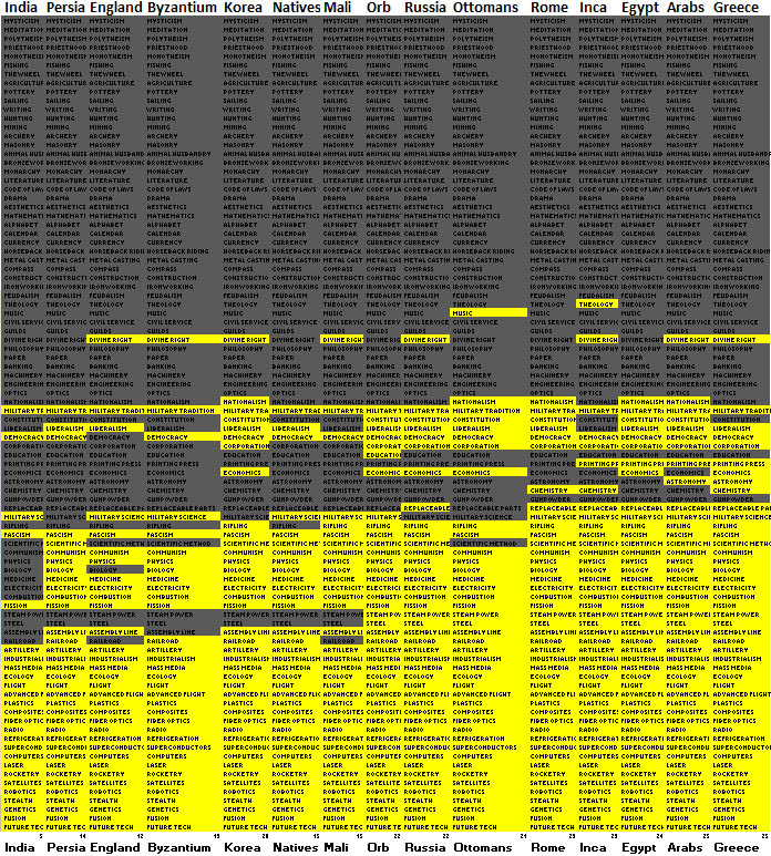and here is the full list of civs & tech. With different colored cells for techs that are and aren't researched yet: