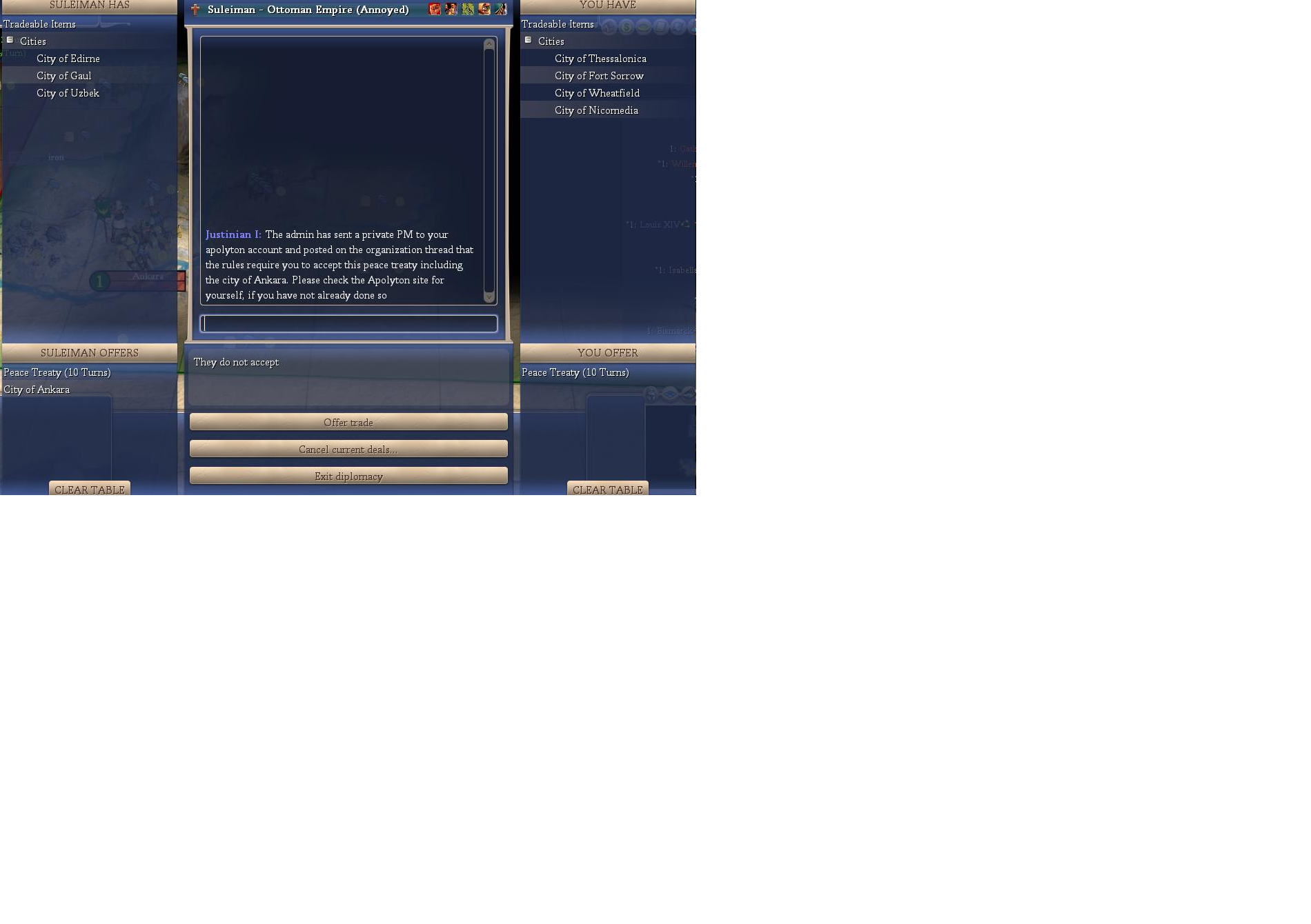 • I have resent another in game peace proposal to the Ottomans, including a message to check his Apolyton account and this thread (see screenshot below). There should be no more excuses.