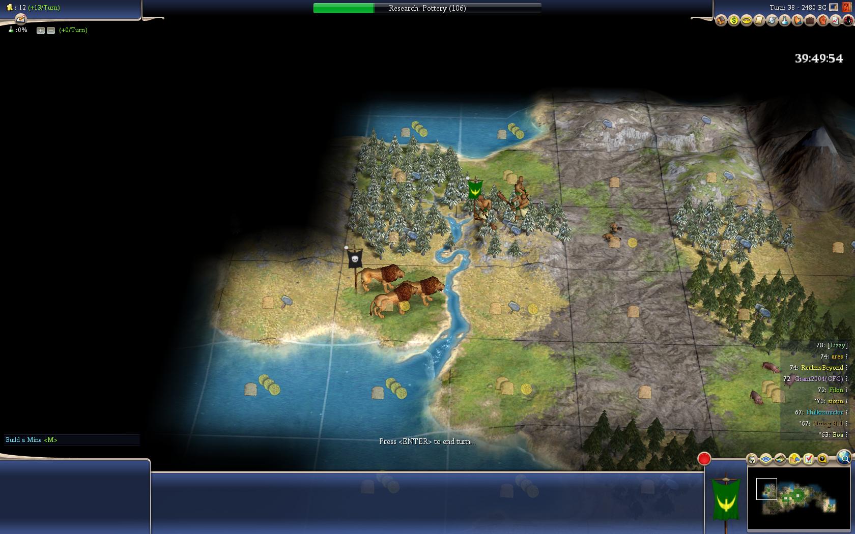 [[Even if we move SE there is good chance that they won't see us and we won't make contact yet (they must have a hill at their border to see two tiles far) ]] edit: I took a closer look, and it seems they have a forested plainhill at their borders so we will make contact if we move further