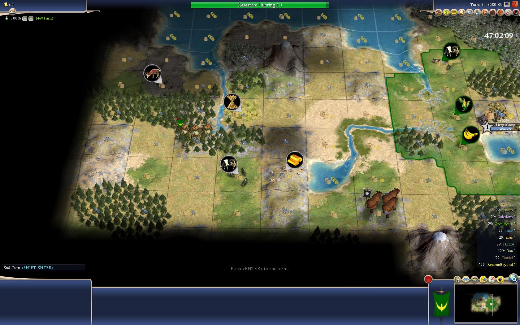 Rigth now I think we should build our city 1SE of wheat, since we first will farm that wheat we can delay pottery (cottages) and go for fishing first (that makes pottery cheaper and we need fishing anyway soon). The third city I think should be 1SE of fish unless we find luxury nearby. If we find horses after animal husbandry that too could modify this. We might find something nice east from us. Will scout out with second warrior.