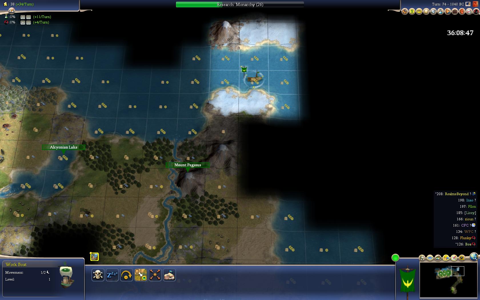 Next topic, why is our tiny worker corp not already building the road towards the bronze? That should be the priority. We're going to need not less than three axemen ASAP and we're going to need 2-3 more workers. We don't have enough workers to keep up with what needs to be done and we need to send those chariots off to explore but we can't do that until the axemen are built. Or if people prefer we can build one scout (they're cheap) and send one scout to the south and a chariot to the east.Try http://wordforge.net/index.php for discussion and debate.