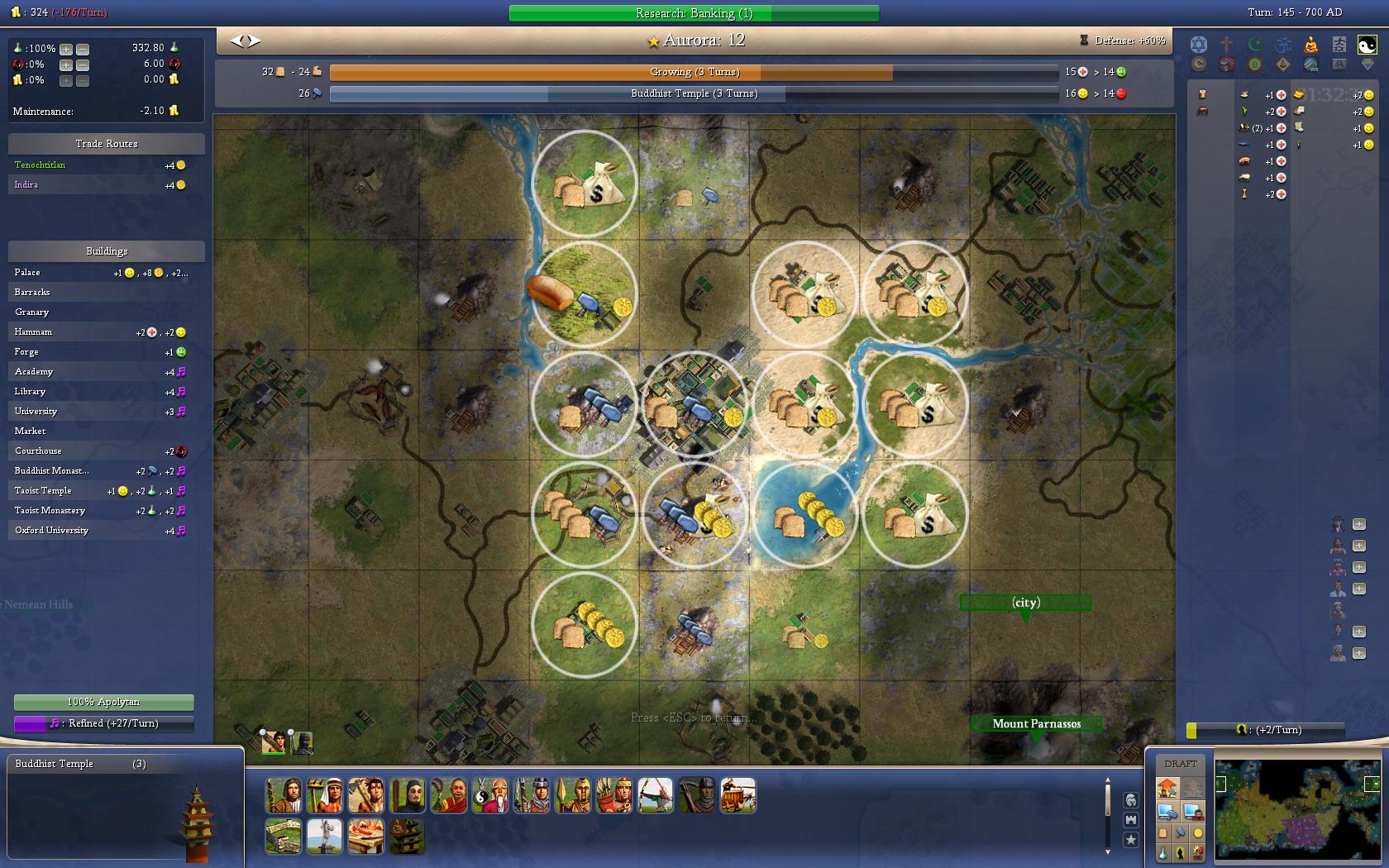 Sorry I have been so absent lately, lots and lots of stuff happening in my life in recent months. I just read through the last 3-4 pages of this thread and I'm in agreement with the decisions mz has been making. I agree however that more population and city development is important, but it looks like with the universities & oxford built there is no pressing building need that needs slavery right now, so everyone seems to be in agreement (mz included) that we can let the cities grow more right now.