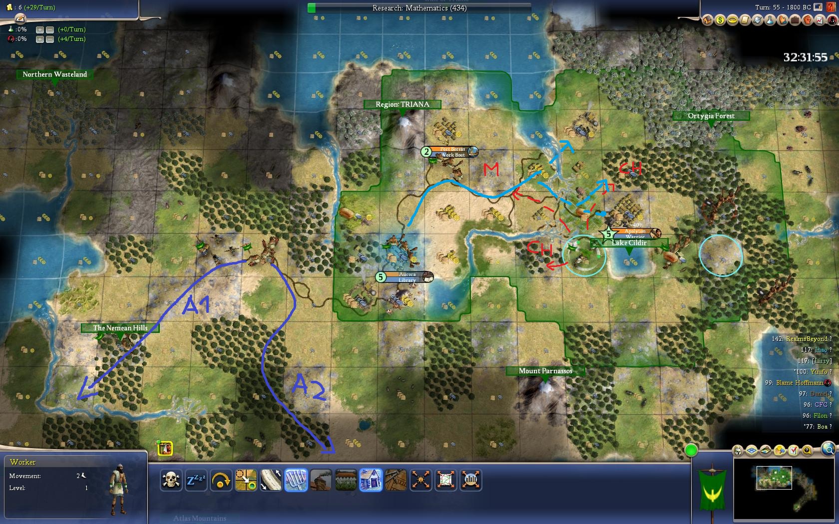 Diomedes was healing in this turn (1,7->1,9), E something was defending the worker and Apollo was fogbusting (I said in #631 that I agree to send him south but only after we founded our city and no one said it was not okay.)