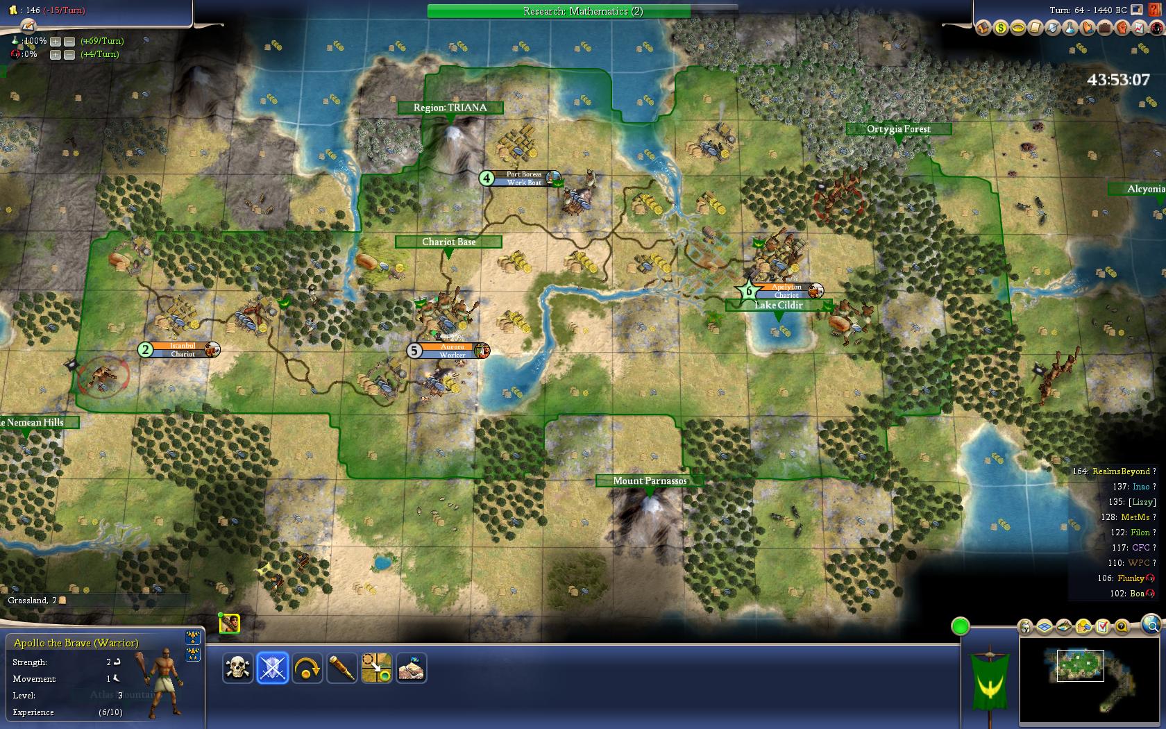 * I vote we go chopping for one turn. Build a chariot for one turn. And combine this with option A. Then we have all options open.