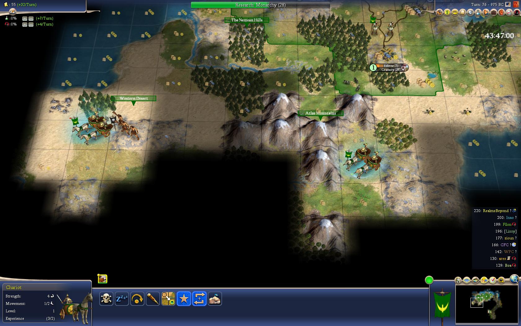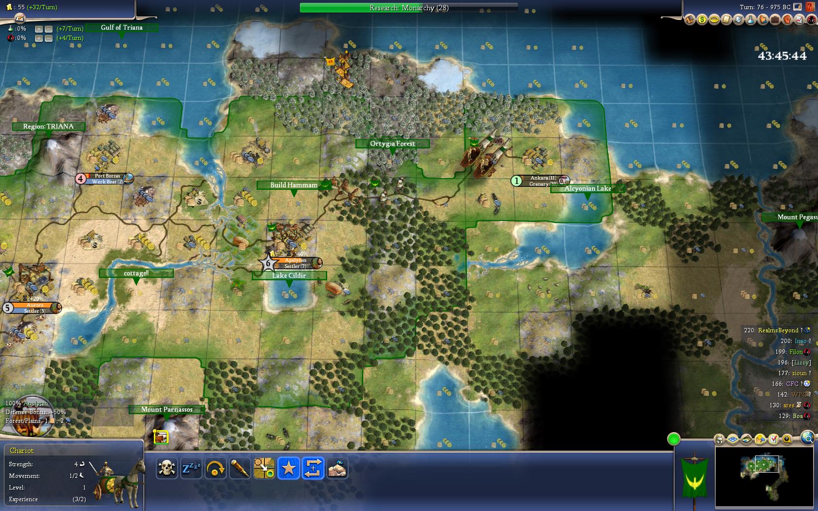 And soon we will have 7 cities, while we are not building any workers right now.