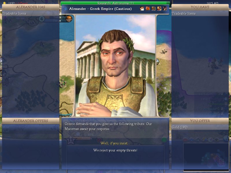 Alexander of Greece, all Pompous Personality and all, come and demands a tribute of 190 Gold..