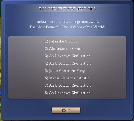 Tacitus completes his work on the Most Powerful Civilizations. We are naturally first on the list.