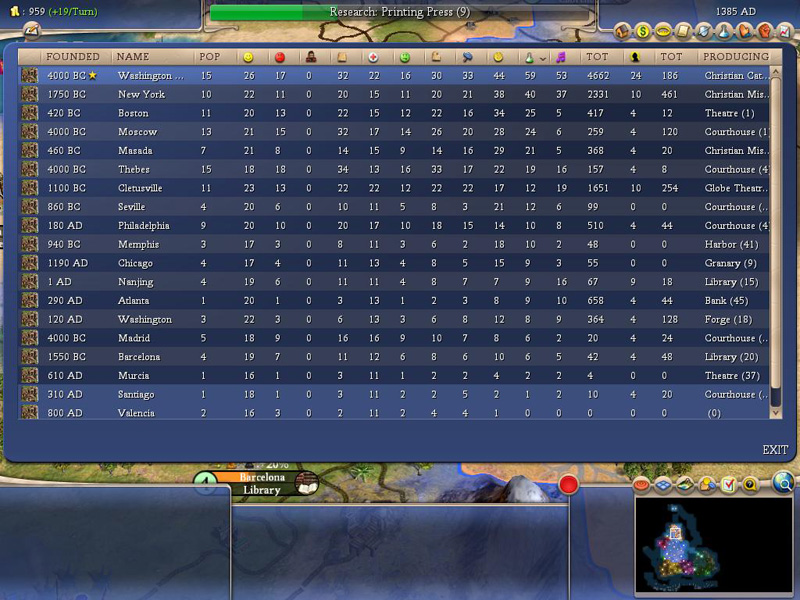 Albert Einstein was born in DC. I send him to NY to build an academy with the aim of getting more research and a second city in the top five, science in NY went up from 29 to 40.