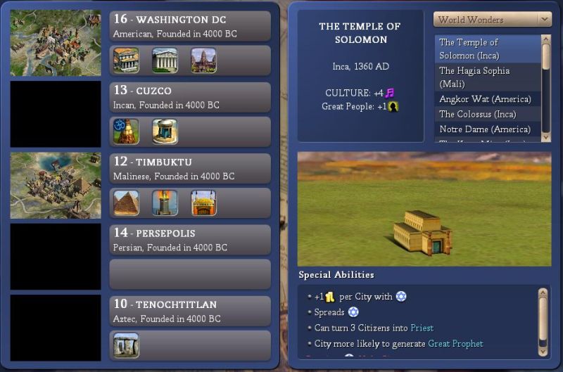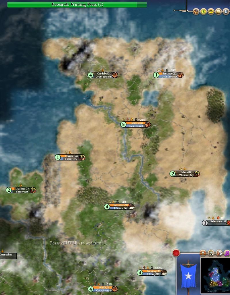 1440 AD: DC builds a musket man they start another one. I start a aquaduct in masada. Islam is founded in Antium. Granary seville. Work on infastruckter.