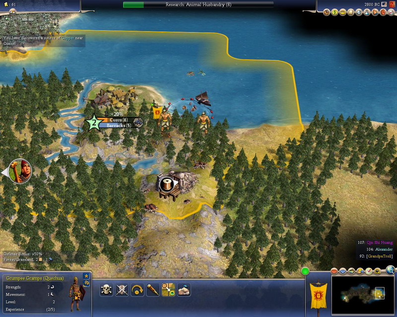 - Workboat finished. Cuzco starts on a melee unit (Quechua) since our city is unprotected. Quechua will be ready next turn.