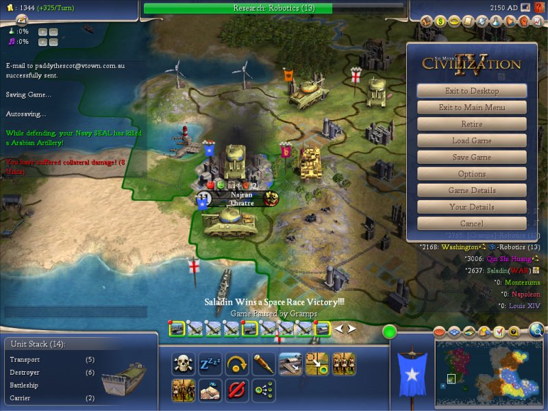 • I have left a covering force within your city of Najan, and have moved XXX Corp off towards Medina
