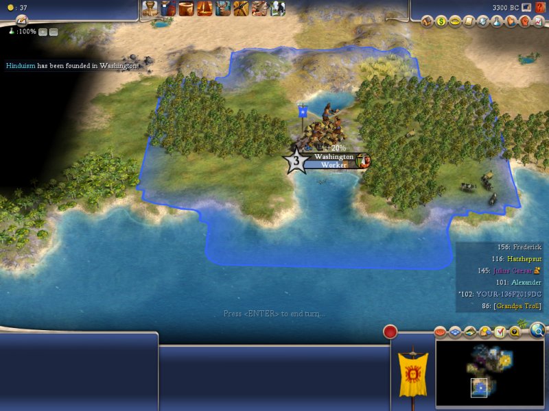 I believe you should have the tech also, yes. You could switch to Hinduism as your state religion, however, I don't know if that would be beneficial right now. Later on, when I get to build a Hindu shrine, then every city with Hinduism will bring in more $$, so it might be a good idea to have us both set to the same religion. As for now, it only affects relationships with other civs (so Rome would think bad of you if you switch to Hinduism, and others don't care, as they don't have any religion yet at all.)