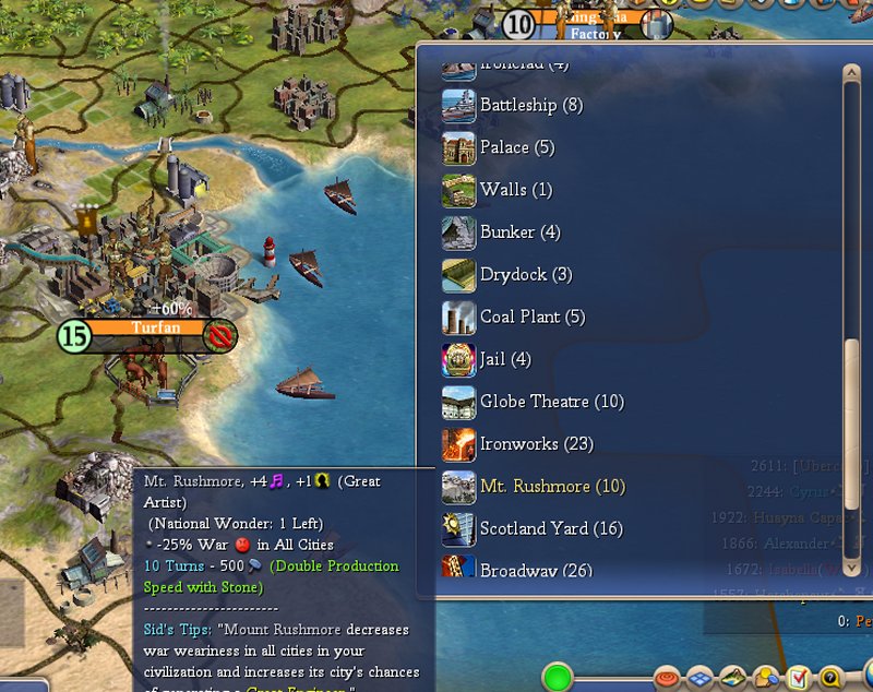 Hurrying battleships in Kara and Old Saray, a factory in Besh and a grenadier in Sakae.