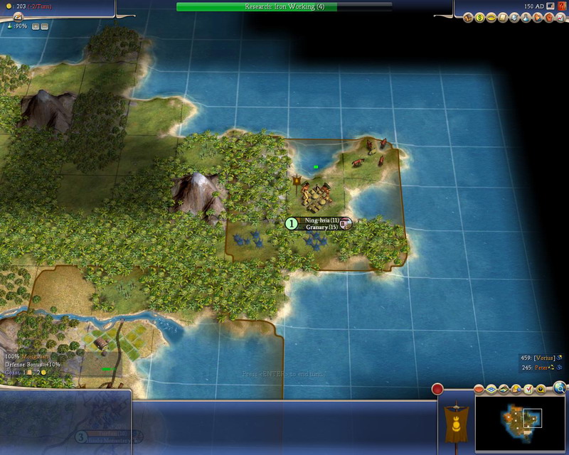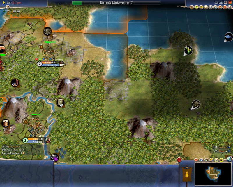 225AD - Iron Working researched! We have two sources of Iron, one right under a mine we already built in Besh- the other in the jungles north east of Kara. Looks like Peter gets none