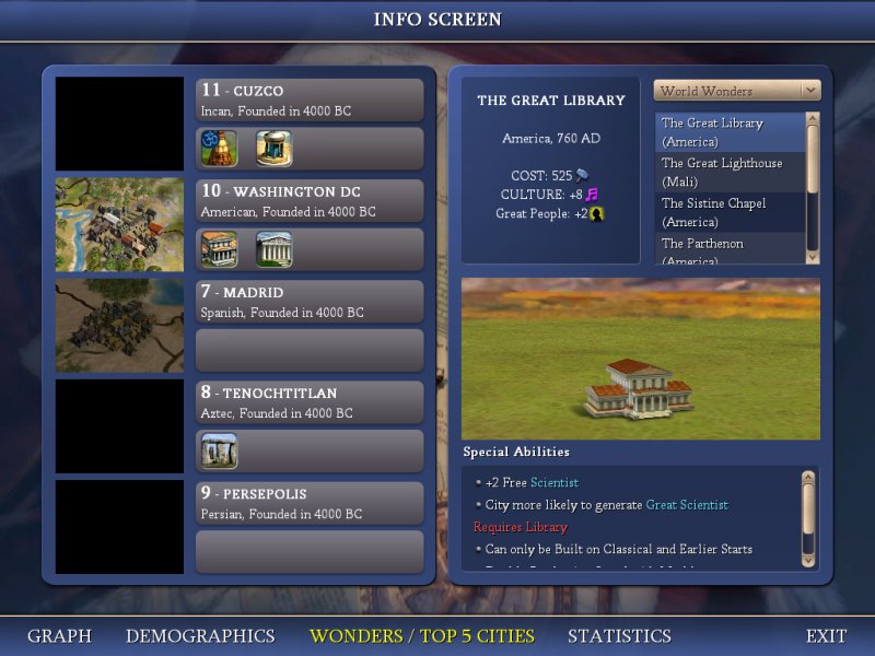 A Market completes in DC, start production of a Horse Archer. The surest peace is one obtained from superior strength and better strength in peace then in war on another's terms.