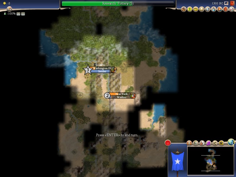 • 1625 BC: washington starts a new settler after completeion of archer. build road on irrigation, warrior exsplores.