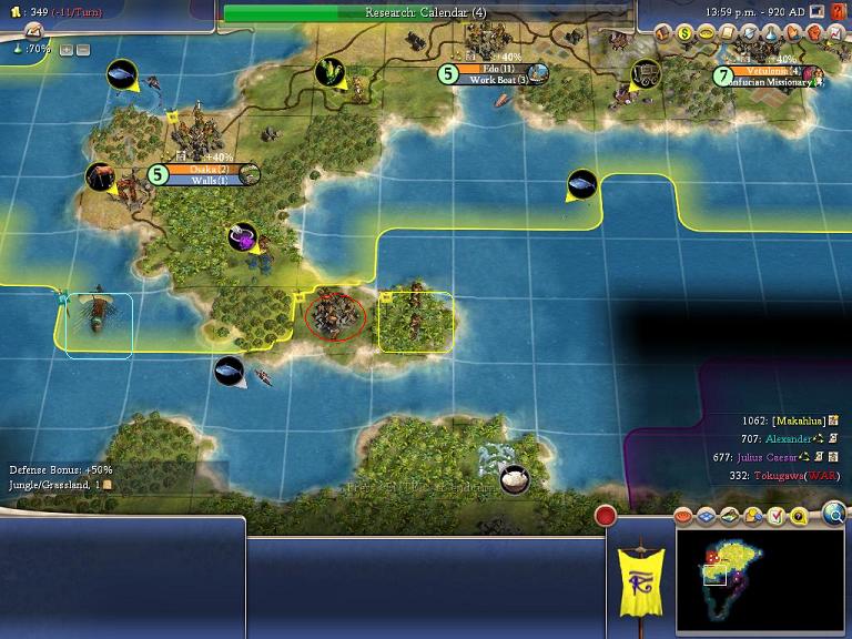 - Our settler moves onto his new city site (a jungle covered hill with some fish a couple of squares West and a Rice paddy over the channel which will be very useful if we can secure and farm it